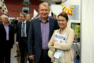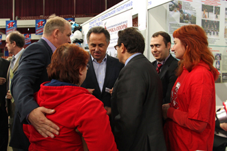 В процессе знакомства с участниками выставки Виталий Мутко посетил стенд Благотворительного Фонда «ТОЧКА ОПОРА», где ознакомился с информацией о Фонде, его целях и задачах, пообщался с Татьяной Смирновой, стипендиаткой Фонда «ТОЧКА ОПОРЫ».
