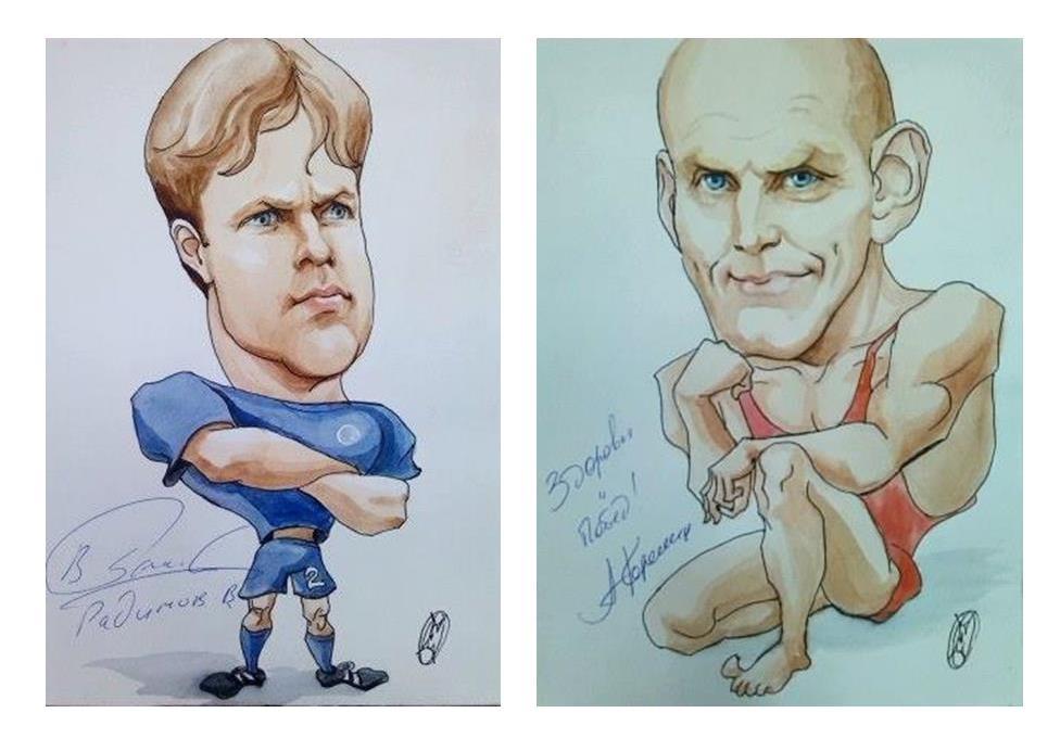 Друзья, у вас появился уникальный шанс стать обладателями веселых шаржей Владислав Радимова и Александра Карелина с автографами знаменитых спортсменов, переданных Фонду интернет-изданием СПОРТДИАЛОГ. Для этого достаточно поддержать проект Благотворительного Фонда «ТОЧКА ОПОРЫ» по сбору средств на инвентарь для чемпионки по парагребле Юлии Сидорцовой.